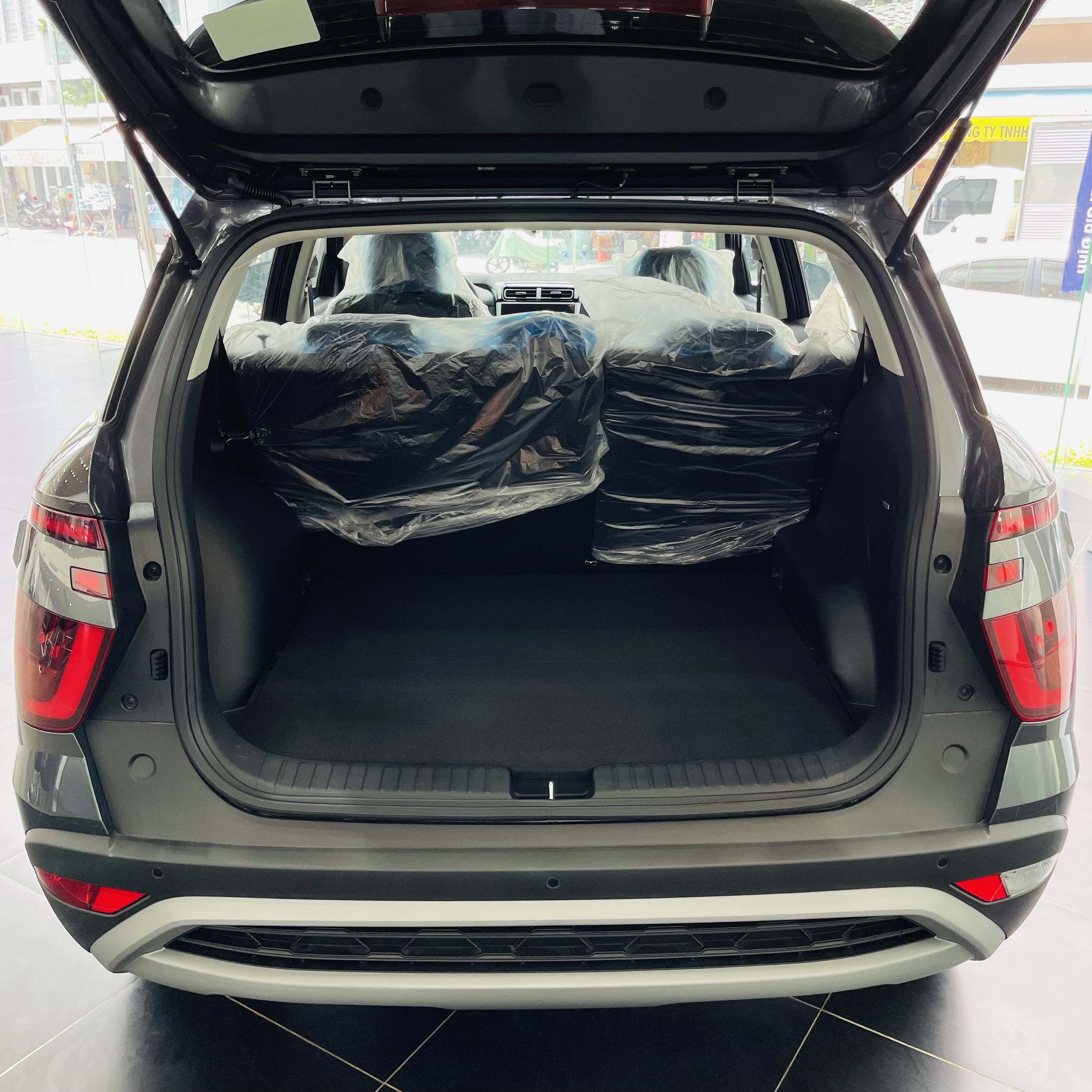 Trong khi đó, cản va phía sau của Creta nhô cao với lớp nhựa cứng màu bạc/đen tạo sự khỏe khoắn. Những trang bị khác ở phần đuôi xe như hệ thống cảm biến lùi, cánh lướt gió tích hợp đèn phanh LED, camera lùi.