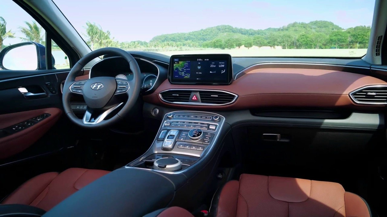 Hyundai Santa Fe thế hệ mới tiếp tục được duy trì và nâng cấp những tiện nghi cao cấp như cửa sổ trời toàn cảnh Panorama, sạc không dây chuẩn Qi, hệ thống ghế chỉnh điện và nhớ ghế, hệ thống sấy vô lăng, sấy và thông gió hàng ghế trước, lẫy chuyển số vô lăng, gạt mưa tự động, kính trước chống mù và chống đọng nước tự động, cổng sạc hiệu suất cao trên các hàng ghế, phanh tay điện tử EPB, giữ phanh tự động Auto Hold…đem đến một không gian sang trọng và tiện ích trên khắp các vị trí.