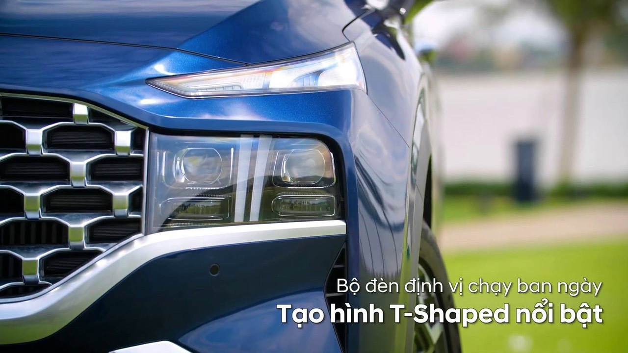 New Santa Fe mang xu hướng “cơ bắp” hơn với lưới tản mạ Crom dạng lục giác sang trọng. Điểm nhấn là bộ đèn định vị chạy ban ngày Daytime Running Light (DRL) tạo hình T-Shaped nổi bật, làm nên nét sang trọng đẳng cấp cho mẫu xe.